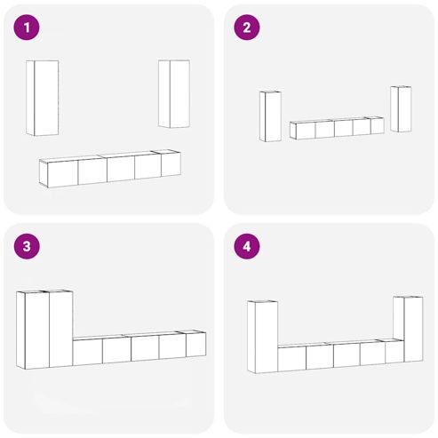 Wir stellen vor: das vidaXL 5-teiliges TV-Schrank-Set in einem stylischen Schwarz Eiche Finish, designed, um die Stimmung in deinem Wohnzimmer zu heben und viele Stauraumlösungen zu bieten. Dieses stilvolle Schrankset umfasst drei Medien-Schränke, die perfekt für all deine Unterhaltungsbedürfnisse sind. Hergestellt aus robustem Holzwerkstoff, zeigen sie ein schickes mattes Finish und minimalistisches Design. ** Anzahl der Teile: 5 ** Farbe: Schwarz ** Form: Rechteckig ** Material: Holz Holzwerkstoff ** Oberfläche: Matt ** Indoor/Außen: Nur drinnen ** Abdeckung enthalten: Nein ** Raum: Wohnzimmer ** Kapazität: Hält Medientechnik ** Halterung enthalten: Wand-/Deckenbefestigungen -spezifische Schrauben oder Dübel nicht enthalten ** Oberflächenhöhe: 2,00 cm ** Schwenkt: Nein ** Marke: ** Lieferumfang: 3 Medien-Schränke ** Montage erforderlich: Ja ** Empfohlene Anzahl von Personen für die Montage: 2