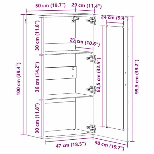 vidaXL Wandmontierter Schrank mit Regal Artisan-Eiche 55 x 29 x 100 cm