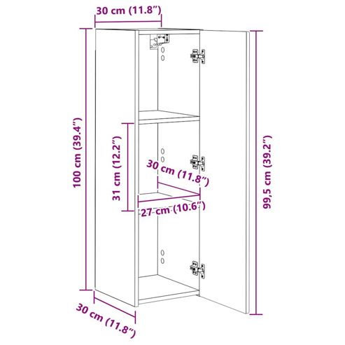 Dieser moderne TV-Wandschrank ist eine clevere, platzsparende Lösung für jedes Wohnzimmer, die Stil und Funktionalität vereint. Mit seinem schlanken, minimalistischen Design zieht er alle Blicke auf sich und bietet gleichzeitig praktischen Stauraum. Durch das Anbringen an der Wand bleiben die Bodenflächen frei und alles bleibt ordentlich. Das Holzwerkstoff-Material sorgt dafür, dass er langlebig ist und seinem stylischen Aussehen treu bleibt, auch bei täglichem Gebrauch. Holzwerkstoff-Konstruktion: Hergestellt aus hochwertigem Holzwerkstoff, ist dieser Wandschrank stabil und zuverlässig. Das Material hält gut, ist ideal für Oberflächen, die lange gut aussehen sollen, und die schöne Maserung bringt Eleganz in dein Wohnzimmer. Wandmontierte Funktionalität: Das praktische Design spart Platz am Boden und passt perfekt in moderne Wohnräume. Durch die feste Wandmontage ist der Wandschrank stabil und Zubehör sowie Elektronik sind leicht zugänglich. Der klare Look sorgt für einen sauberen, organisierten Raum. Diskrete Stauraumlösungen: Mit 90°-Schwenk-Türen und Regalen gibt's genügend Platz für verschiedene Geräte. Egal ob Bücher, Media-Player oder Deko – alles hat seinen Platz und hält dein Wohnzimmer ordentlich. Einfache und moderne Stil: Mit klaren Linien und minimalistischem Design verkörpert dieser Schrank einen modernen Look. Perfekt für zeitgenössische Häuser, hebt seine schlichte Eleganz die bestehende Deko hervor und bleibt gleichzeitig funktional. Pflegeleicht: Für die Pflege wischst du einfach mit einem feuchten Tuch drüber, damit er sauber bleibt. So bleibt er in einem tollen Zustand und sieht über Jahre elegant aus. ** Farbe: Schwarz ** Material: Holzwerkstoff ** Gesamtabmessungen: 30 x 31 x 100 cm (L x B x H) ** mit 2 Türen ** mit 6 Regalen ** Montage erforderlich: Ja ** Lieferumfang: ** 1 x TV-Wandregal