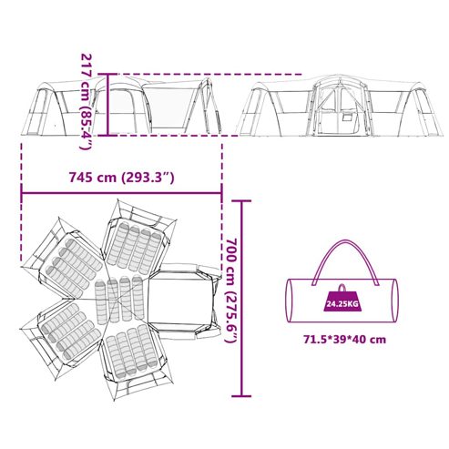 vidaXL Familienzelt mit Dach Blau und Grau 745 x 700 x 217 cm