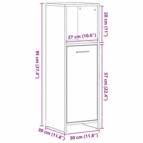 vidaXL Badezimmerschrank aus schwarzer Eiche, 30 x 30 x 95 cm, Holzwerkstoff