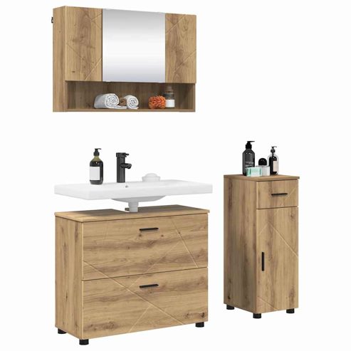 vidaXL Badezimmermöbel Set 3 pcs Artisan-Eiche 76,5 x 35 x 64 cm
