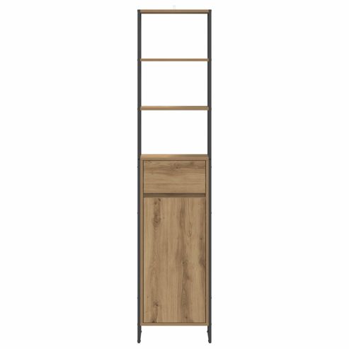 Dieser Industriedesign-Badschrank ist die perfekte Lösung für stilvolles und modernes Aufbewahren in jedem Badezimmer. Die rechteckige Form spiegelt zeitgemäßen Stil wider. Hergestellt aus Holzwerkstoff, verbindet er schickes Aussehen mit toller Funktionalität und ist ideal für diverse Badezimmer-Styles. So hast du die Möglichkeit, deine Utensilien ordentlich zu verstauen und den Raum aufgeräumt zu halten. Hochwertiger Holzwerkstoff: Der Schrank besteht aus qualitativ hochwertigem Holzwerkstoff, der für seine Widerstandsfähigkeit und schicke Optik ausgewählt wurde. So bleibt er eine zuverlässige Aufbewahrungslösung und sieht dazu noch gut aus – perfekt für jedes moderne Bad. Robuste Konstruktion: Der stabile Aufbau sorgt dafür, dass der Schrank dir über Jahre hinweg treu bleibt. Die Kombination aus Holzwerkstoff und Stahlbeinen gibt ihm den nötigen Halt für den Alltag im Badezimmer. Effiziente Aufbewahrungsmöglichkeiten: Mit viel Platz für deine Sachen organisiert dieser Schrank alles superschnell. Die cleveren Regale sorgen dafür, dass du alles zeitsparend verstauen kannst und immer einen klaren Überblick behältst. Einfache Montageanforderungen: Der Schrank wird von zwei Personen mit einem Schraubendreher aufgebaut. Der Aufbau ist einfach und sorgt dafür, dass er stabil steht, wenn er montiert ist. Ausgeliefert wird 1 x Badschrank. Pflegehinweise: Um den Schrank in Top-Zustand zu halten, wisch ihn einfach mit einem feuchten Tuch ab. Regelmäßige Pflege hält seine schicke Optik und bringt Frische in dein Bad. ** Farbe: Kunsthandwerk Eiche ** Material: Holzwerkstoff ** Gesamtabmessungen: 40 x 30 x 180 cm (L x B x H) ** Gewicht: 20,9 kg ** Langlebig ** Mit Schublade ** Rahmenmaterial: Holzwerkstoff ** mit 1 Tür ** Innen- / Außenbereich: Nur für den Innenbereich ** Lieferumfang: ** 1 x Badezimmerunterschrank ** Montage erforderlich: Ja