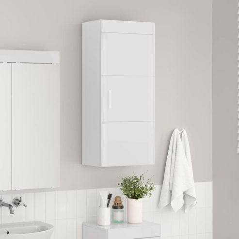 vidaXL Badezimmer-Wandschrank TULUM Hochglanz Weiß 37 x 24,5 x 86 cm