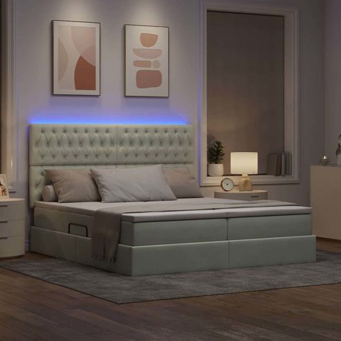 vidaXL Bett mit LED-Lichtleisten Hellgrau 200 x 200 cm Samt