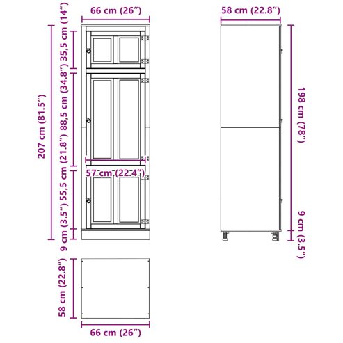 Der moderne Schrank ist so gestaltet, dass er die stilvolle Funktionalität deines Wohn- oder Esszimmers aufwertet. Wenn du Wert auf einen klaren, eleganten Stil legst und gleichzeitig praktische Lösungen suchst, ist dieser Schrank genau richtig für dich. Die rechteckige Form und sauberen Linien fügen sich perfekt in jeden Raum ein, während er ausreichend Platz für deine Wohn- und Essgegenstände bietet. Das ansprechende Kiefernholz und der schlanke Look machen ihn zu einer großartigen Ergänzung, die sich verschiedenen Einrichtungsstilen anpasst. Er bringt eine beeindruckende visuelle Präsenz mit, die die Schönheit deines Zuhauses hervorhebt und dabei nützlich bleibt. Massivholz Kiefer Konstruktion Dieser Schrank ist aus robustem Kiefernholz gefertigt, das für Langlebigkeit und Haltbarkeit sorgt. Diese Materialwahl unterstützt nicht nur eine stabilere Struktur, sondern verleiht dem Möbelstück auch eine elegante natürliche Ausstrahlung. Massivholz Kiefer ist bekannt für seine Stärke und bietet die perfekte Basis für alle Aufbewahrungslösungen. Elegante rechteckige Form Der Schrank hat ein modernes Design, das sich perfekt in die zeitgenössische Einrichtung einfügt. Sein schlanker Look ermöglicht es ihm, nahtlos mit anderem Mobiliar zu harmonieren und bietet ausreichend Platz für deine organisatorischen Bedürfnisse. Das zurückhaltende Design sorgt dafür, dass er stilvoll ist, ohne sich aufzudrängen. Reichlich Stauraum Dieser Schrank wurde mit dem Fokus auf Praktikabilität entwickelt und bietet viele Möglichkeiten zur Aufbewahrung. Er nutzt den Platz optimal mit einer durchdachten Anordnung für all deine Gegenstände, von Geschirr bis Deko. Damit behältst du den Überblick und schaffst Platz für ein aufgeräumtes Zuhause. Moderne Gestaltung Die klaren Linien und reduzierten Verzierungen sorgen dafür, dass der Schrank sowohl in modernen als auch in traditionellen Umgebungen super aussieht. Er ergänzt minimalistisches Design und sorgt für eine harmonische Atmosphäre in deinem Zuhause. Dieses Möbelstück passt perfekt zu Trends in der Inneneinrichtung. Sicherheitsmerkmale Um die Sicherheit zu gewährleisten, solltest du diesen Schrank an der Wand befestigen, damit er nicht umfallen kann. Dieser wichtige Schritt sorgt dafür, dass das Möbelstück stabil bleibt und minimiert das Risiko von Unfällen. Dadurch trägst du zu einem sicheren Wohnraum bei und erhältst gleichzeitig das ansprechende Design des Schranks. ** Farbe: Honig ** Material: Massives Kiefernholz ** Gesamtabmessungen: 66 x 58 x 207 cm (L x B x H) ** Gewicht: 37,3 kg ** Reichlich Stauraum ** mit 2 Regalen ** Rahmenmaterial: Massivholz Kiefer ** mit 3 Scharniertüren ** Max. Gewicht: 70 kg ** Nur für den Innenbereich ** Lieferumfang: ** 1 x Schrank ** Montage erforderlich: Ja