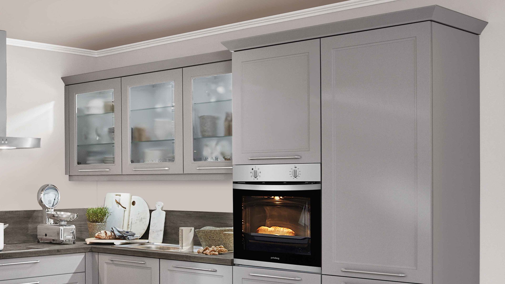 Die Küche ist mit vier privileg Einbaugeräten ausgestattet: