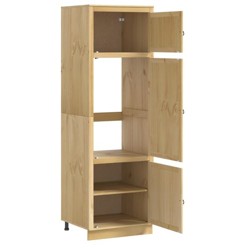 Der moderne Schrank ist so gestaltet, dass er die stilvolle Funktionalität deines Wohn- oder Esszimmers aufwertet. Wenn du Wert auf einen klaren, eleganten Stil legst und gleichzeitig praktische Lösungen suchst, ist dieser Schrank genau richtig für dich. Die rechteckige Form und sauberen Linien fügen sich perfekt in jeden Raum ein, während er ausreichend Platz für deine Wohn- und Essgegenstände bietet. Das ansprechende Kiefernholz und der schlanke Look machen ihn zu einer großartigen Ergänzung, die sich verschiedenen Einrichtungsstilen anpasst. Er bringt eine beeindruckende visuelle Präsenz mit, die die Schönheit deines Zuhauses hervorhebt und dabei nützlich bleibt. Massivholz Kiefer Konstruktion Dieser Schrank ist aus robustem Kiefernholz gefertigt, das für Langlebigkeit und Haltbarkeit sorgt. Diese Materialwahl unterstützt nicht nur eine stabilere Struktur, sondern verleiht dem Möbelstück auch eine elegante natürliche Ausstrahlung. Massivholz Kiefer ist bekannt für seine Stärke und bietet die perfekte Basis für alle Aufbewahrungslösungen. Elegante rechteckige Form Der Schrank hat ein modernes Design, das sich perfekt in die zeitgenössische Einrichtung einfügt. Sein schlanker Look ermöglicht es ihm, nahtlos mit anderem Mobiliar zu harmonieren und bietet ausreichend Platz für deine organisatorischen Bedürfnisse. Das zurückhaltende Design sorgt dafür, dass er stilvoll ist, ohne sich aufzudrängen. Reichlich Stauraum Dieser Schrank wurde mit dem Fokus auf Praktikabilität entwickelt und bietet viele Möglichkeiten zur Aufbewahrung. Er nutzt den Platz optimal mit einer durchdachten Anordnung für all deine Gegenstände, von Geschirr bis Deko. Damit behältst du den Überblick und schaffst Platz für ein aufgeräumtes Zuhause. Moderne Gestaltung Die klaren Linien und reduzierten Verzierungen sorgen dafür, dass der Schrank sowohl in modernen als auch in traditionellen Umgebungen super aussieht. Er ergänzt minimalistisches Design und sorgt für eine harmonische Atmosphäre in deinem Zuhause. Dieses Möbelstück passt perfekt zu Trends in der Inneneinrichtung. Sicherheitsmerkmale Um die Sicherheit zu gewährleisten, solltest du diesen Schrank an der Wand befestigen, damit er nicht umfallen kann. Dieser wichtige Schritt sorgt dafür, dass das Möbelstück stabil bleibt und minimiert das Risiko von Unfällen. Dadurch trägst du zu einem sicheren Wohnraum bei und erhältst gleichzeitig das ansprechende Design des Schranks. ** Farbe: Honig ** Material: Massives Kiefernholz ** Gesamtabmessungen: 66 x 58 x 207 cm (L x B x H) ** Gewicht: 37,3 kg ** Reichlich Stauraum ** mit 2 Regalen ** Rahmenmaterial: Massivholz Kiefer ** mit 3 Scharniertüren ** Max. Gewicht: 70 kg ** Nur für den Innenbereich ** Lieferumfang: ** 1 x Schrank ** Montage erforderlich: Ja
