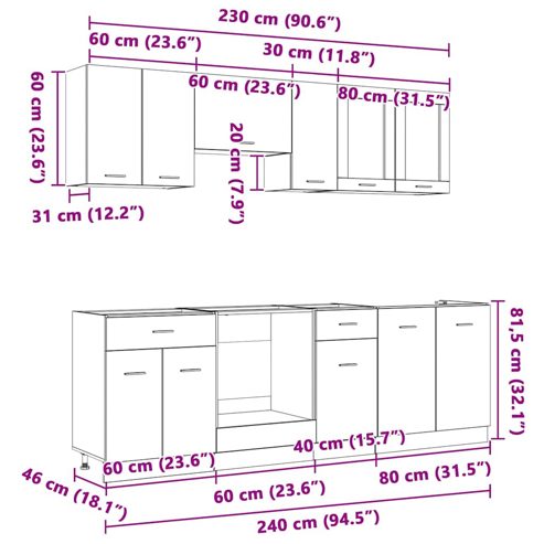 vidaXL Küchenschrank-Set mit Tür 8 pcs Räuchereiche 240 x 46 x 81,5 cm