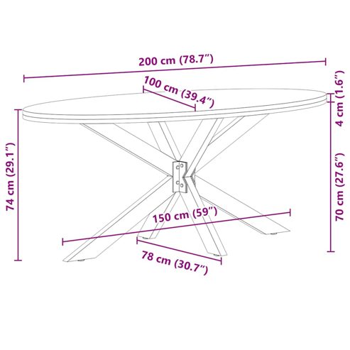 Mach jede Mahlzeit unvergesslich, indem du dich jeden Tag mit deiner Familie oder deinen Freunden um diesen Esstisch aus Holz versammelst! Robustes und langlebiges Material: Massives Eichenholz ist für seine Festigkeit, Haltbarkeit und schöne Maserung bekannt, weshalb es sich hervorragend für haltbare Möbel eignet. Durch seine natürliche Beständigkeit gegen Insektenbefall und Schimmelbildung sehen Eichenmöbel selbst nach jahrelangem Gebrauch brandneu aus.Großer Tisch: Dieser Tisch bietet mit seinen Maßen von 200 x 100 cm viel Platz zum Sitzen und ist das Herzstück deines Essbereichs.Einzigartiger Charme: Da Äste, Risse und Farbabweichungen natürliche Merkmale des Eichenholzes sind, hat jedes Stück dieses Produkts seinen ganz eigenen Charme. Auf den Bildern siehst du Beispiele für die zu erwartenden Variationen.Praktisches Design: Diese Esstischbeine sind mit verstellbaren Nivellierfüßen ausgestattet, die auch auf unebenen Böden für Stabilität sorgen und Bodenkratzer minimieren. Außerdem verfügt die Halterung über vorgebohrte Löcher und mitgelieferte Schrauben, mit denen das Bein an der Tischplatte befestigt werden kann, was die Montage erleichtert.Robustes und stabiles Gestell: Dieser Esszimmertisch verfügt über spinnenförmige Beine aus pulverbeschichtetem Stahl, die für außergewöhnliche Stabilität und Sicherheit sorgen. Gut zu wissen:Jedes Stück ist ein Unikat, das in Farbe und Maserung variiert. Die Lieferung erfolgt in zufälliger Reihenfolge, wodurch die Exklusivität und Individualität deines Produkts gewährleistet wird.Äste und kleinere Fehler werden mit schwarzem Füllmaterial aufgefüllt, um eine schöne und glatte Tischoberfläche zu erhalten. Beispiele findest du in den Abbildungen.Die Tischplatte ist an den Rändern 4 cm dick, um ein robustes Aussehen zu gewährleisten, und in der Mitte 2 cm dick, um den Holzverbrauch und das Gesamtgewicht zu reduzieren.Bitte bohre die Löcher in der Mitte, nicht an den Rändern der Platte.Bitte achte darauf, die maximale Bohrtiefe von 15 mm nicht zu überschreiten, um die Tischplatte nicht zu beschädigen, da die Plattenstärke 20 mm beträgt.Wir empfehlen, einen Schraubendreher anstelle einer elektrischen Bohrmaschine zu verwenden, um Holzrisse beim Anbringen der Beine zu vermeiden. ** Gesamtmaße: 200 x 100 x 74 cm (L x B x H) ** Zusammenbau erforderlich: Ja ** Tischplatte: ** Farbe: Hellbraun ** Material: Massives Eichenholz, fein geschliffen und hell lackiert ** Max. Einschraubtiefe: 15 mm ** Keine vorgebohrten Löcher ** Form: Oval ** Gewicht: ca. 32 kg, mit +/-8% Toleranz ** Tischbeine: ** Farbe: Anthrazit ** Material: Pulverbeschichteter Stahl ** Gesamtabmessungen: 150 x 78 x 72 cm (B x T x H) ** Abmessungen der Röhre: 80 x 40 x 1,2 mm (L x B x T) ** Abmessungen der Halterung(1): 80 x 780 x 4 mm (L x B x T) ** Abmessungen der Halterung(2): 80 x 250 x 4 mm (L x B x T) ** Spinnenform ** Verstellbare Kunststoffnivellierer ** Lieferung umfasst: ** 1 x Tischplatte ** 1 x Tischbein ** 1 x Satz Befestigungsschrauben (M5 x 18 mm) für die Befestigung der Beine an der Tischplatte