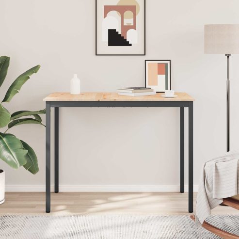Dieser moderne Bartisch mit seinen klaren Linien und schlichtem Design bringt Schwung in dein Esszimmer oder deine Küche. Die elegante Tischplatte vereint Schlichtheit und Funktionalität und schafft eine gemütliche Atmosphäre zum Essen oder für Gäste. Mit einer robusten Metallkonstruktion kombiniert er industriellen Charme mit heimischem Flair – der ideale Mittelpunkt für alle, die einen minimalistischen Stil lieben. Massivholz Kiefer Die Tischplatte aus hochwertigem, massivem Kiefernholz ist nicht nur langlebig, sondern auch super hübsch und passt perfekt zum Alltagsgebrauch. Die natürliche Maserung macht jedes Stück einzigartig. Moderne Metallbeine Die quadratischen Metallbeine sorgen für eine coole, minimalistische Ästhetik und bieten ein stabiles Fundament, damit nichts wackelt. H-förmige Balkenunterstützung Der H-förmige Balken unter der Tischplatte sorgt für hohe Stabilität und hilft, die massive Tischplatte perfekt zu unterstützen. So ist er für alle Zusammenkünfte geeignet. Für innen geeignet Dieser Bartisch ist nur für drinnen gedacht und passt super in Küchen oder Esszimmer. Er lässt sich leicht in lässige oder formelle Essbereiche integrieren und sieht überall gut aus. Einfache Pflegehinweise Das edle Design ist ganz leicht zu reinigen – ein trockenes Tuch reicht völlig aus. So hast du mehr Zeit zum Genießen mit Familie und Freunden. ** Farbe: Natur ** Material: Massives Kiefernholz ** Gesamtabmessungen: 140 x 80 x 105 cm (L x B x H) ** Gewicht: 20,76 kg ** H-förmiger Balken ** Max. Gewicht: 80 kg ** Nur für den Innenbereich ** Lieferumfang: ** 1 x Bartisch ** Montage erforderlich: Ja