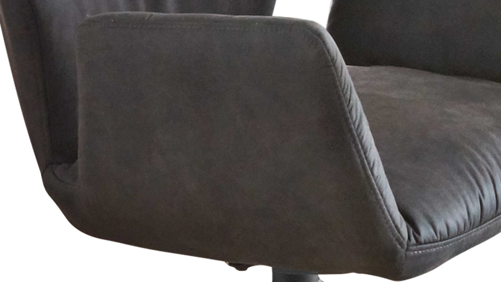 Das markante Stativgestell aus robustem schwarzen Eisen zieht die Blicke auf sich und gewährleistet die notwendige Standfestigkeit. Darüber hinaus harmoniert es bestens mit dem trendig anthrazitfarbenen Mikrofaserbezug.