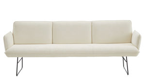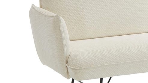 offwhitefarbener Stoffbezug, kombiniert mit matt schwarzem Drahtkufengestell aus Metall