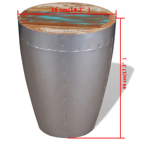 Dieser Holz-Hocker im Vintage-Stil ist ein einzigartiges Möbelstück für Ihre Küche, Ihr Wohn- oder Esszimmer! Die Sitzfläche dieses Hockers, der übrigens auch wunderbar als Beistelltisch verwendet werden kann, wurde aus recyceltem Massivholz gefertigt, wodurch jedes Möbelstück einen einzigartigen und unverwechselbaren Charakter erhält. Möbel aus recyceltem Holz verfügen über die Eigenschaften der verschiedenen Holzarten, aus denen sie zusammengesetzt sind, wie Teak, Akazienholz, Mangoholz usw. Das recycelte Holz ist massiv, stabil, langlebig und schön. Kleine Unebenheiten am Holz, wie z.B. Nagellöcher, Lackspuren oder Abnutzungen, erzählen eine Geschichte und verleihen dem Möbelstück einen individuellen, authentischen Charakter. Die Sitzfläche des Hockers ist komplett handgefertigt, wobei die Handwerkskunst zum eindrucksvollen Retro-Stil dieses Möbels beiträgt. Jeder Schritt des Fertigungsprozesses, ob Abschleifen, Bemalen oder Lackieren, wurde mit größter Sorgfalt ausgeführt. Dieser auffällige Hocker bietet nicht nur eine bequeme Sitzmöglichkeit, sondern ist dank seiner markanten Aluminium-Ummantelung im Retro-Industrie-Stil auch sehr dekorativ. Er kann auch als Beistelltisch verwendet werden, um als Ablage für Speisen oder Getränke zu dienen oder dekorative Objekte wie Fotorahmen oder sogar Topfpflanzen auszustellen. Wichtiger Hinweis: Die Farben variieren von Stück zu Stück und machen jeden Hocker einzigartig. Die Lieferung erfolgt in zufälliger Reihenfolge. ** Farbe: Braun ** Material: Recyceltes Massivholz für die Sitzfläche + Aluminiumverkleidung im Retro-Industrie-Stil ** Maße: 36 x 44 cm (Durchmesser x H) ** Fußdurchmesser: 22 cm ** Abgeschliffen, teilweise bemalt und lackiert Maximal 110 kg pro Sitzplatz.