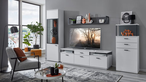 nach Wunsch kombinierbare Wohnmöbel, mit LED-Beleuchtung ergänzbar