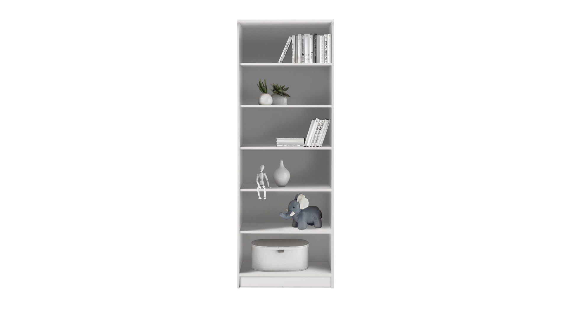 Edel und zeitlos ist dieses elegante Bücherregal. Kombinieren Sie die schlichten weißen Kunststoffoberflächen und die elegante Form des Regals mit kräftigen Farben und warmen Holztönen. Und ganz egal, ob Sie es modern oder klassisch lieben, ob Sie eine Ergänzung für Ihre Wohnzimmereinrichtung oder Ihre Esszimmermöbel suchen, dieses Modell ist die perfekte Wahl. Nutzen Sie dabei das praktische Bücherregal und verstauen Sie Ihre Souvenirs aus aller Welt auf den fünf Einlegeböden.