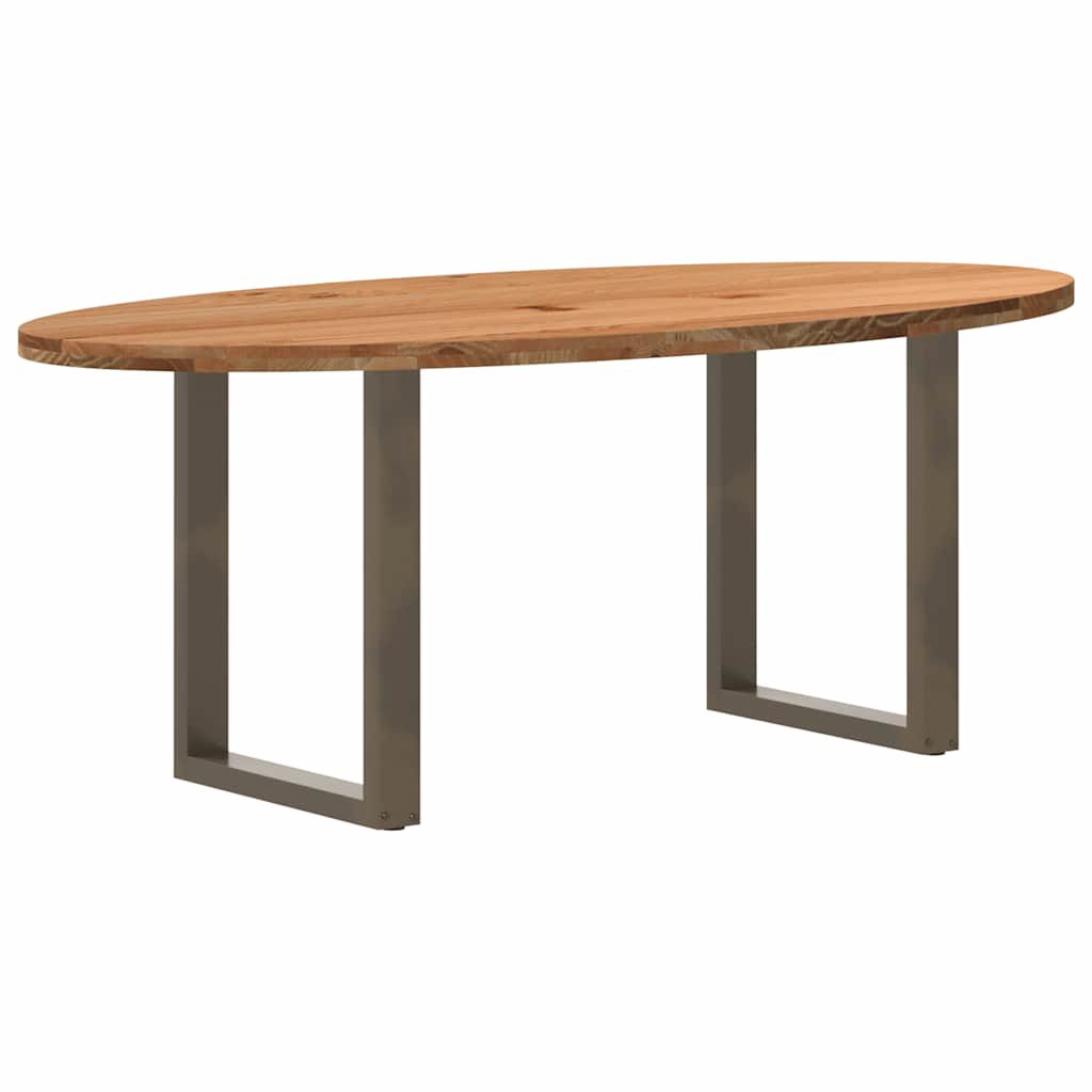 Mach jede Mahlzeit unvergesslich, indem du dich jeden Tag mit deiner Familie oder deinen Freunden um diesen Esstisch aus Holz versammelst! Robustes und langlebiges Material: Massives Eichenholz ist für seine Festigkeit, Haltbarkeit und schöne Maserung bekannt, weshalb es sich hervorragend für haltbare Möbel eignet. Durch seine natürliche Beständigkeit gegen Insektenbefall und Schimmelbildung sehen Eichenmöbel selbst nach jahrelangem Gebrauch brandneu aus.Großer Tisch: Dieser Tisch bietet mit seinen Maßen von 200 x 100 cm viel Platz zum Sitzen und ist das Herzstück deines Essbereichs.Einzigartiger Charme: Da Äste, Risse und Farbabweichungen natürliche Merkmale des Eichenholzes sind, hat jedes Stück dieses Produkts seinen ganz eigenen Charme. Auf den Bildern siehst du Beispiele für die zu erwartenden Variationen.Praktisches Design: Diese Esstischbeine sind mit verstellbaren Nivellierfüßen ausgestattet, die auch auf unebenen Böden für Stabilität sorgen und Bodenkratzer minimieren. Außerdem verfügt die Halterung über vorgebohrte Löcher und mitgelieferte Schrauben, mit denen das Bein an der Tischplatte befestigt werden kann, was die Montage erleichtert.Robustes und stabiles Gestell: Dieser Esszimmertisch hat U-förmige Beine aus pulverbeschichtetem Stahl, die für außergewöhnliche Stabilität und Sicherheit sorgen. Gut zu wissen:Jedes Stück ist ein Unikat, das in Farbe und Maserung variiert. Die Lieferung erfolgt in zufälliger Reihenfolge, wodurch die Exklusivität und Individualität deines Produkts gewährleistet wird.Äste und kleinere Fehler werden mit schwarzem Füllmaterial aufgefüllt, um eine schöne und glatte Tischoberfläche zu erhalten. Beispiele findest du in den Abbildungen.Die Tischplatte ist an den Rändern 4 cm dick, um ein robustes Aussehen zu gewährleisten, und in der Mitte 2 cm dick, um den Holzverbrauch und das Gesamtgewicht zu reduzieren.Bitte bohre die Löcher in der Mitte, nicht an den Rändern der Platte.Bitte achte darauf, die maximale Bohrtiefe von 15 mm nicht zu überschreiten, um die Tischplatte nicht zu beschädigen, da die Plattenstärke 20 mm beträgt.Wir empfehlen, einen Schraubendreher anstelle einer elektrischen Bohrmaschine zu verwenden, um Holzrisse beim Anbringen der Beine zu vermeiden. ** Gesamtmaße: 200 x 100 x 74 cm (L x B x H) ** Zusammenbau erforderlich: Ja ** Tischplatte: ** Farbe: Hellbraun ** Material: Massives Eichenholz, fein geschliffen und hell lackiert ** Max. Einschraubtiefe: 15 mm ** Keine vorgebohrten Löcher ** Form: Oval ** Gewicht: ca. 32 kg, mit +/-8% Toleranz ** Tischbeine: ** Farbe: Naturstahl ** Material: Pulverbeschichteter Stahl ** Gesamtgröße (pro Stück): 60 x 72 cm (B x H) ** Abmessungen der Röhre: 80 x 40 x 1 mm (L x B x T) ** Abmessungen der Halterung: 600 x 80 x 4 mm (L x B x T) ** U-Form ** Verstellbare Kunststoffnivellierer ** Lieferung beinhaltet: ** 1 x Tischplatte ** 2 x Tischbein ** 1 x Satz Befestigungsschrauben (M5 x 18 mm) für die Befestigung der Beine an der Tischplatte