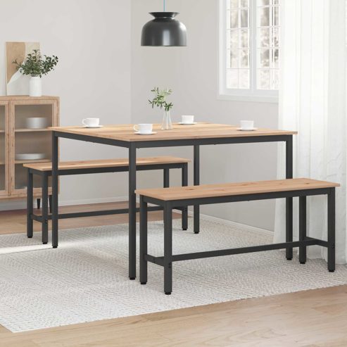 Dieser moderne Esstisch hat die perfekte Mischung aus Trend und Stil. Er ist ideal für Leute, die einfache Designs mögen, weil er super leicht in jedes Esszimmer oder jede Küche passt und das Gesamtbild aufwertet. Hier bekommst du nicht nur eine Essfläche, sondern auch einen echten Hingucker für dein Zuhause. Top Materialien: Aus solidem Kiefernholz gefertigt, bietet dieser Tisch genau die richtige Mischung aus Stabilität und Stil. Die natürliche Holzmaserung macht ihn besonders und zeitlos, während die hervorragende Verarbeitung dafür sorgt, dass er viele Jahre hält. Robuste Beine: Die quadratischen Metallbeine geben dir den nötigen Halt, egal wie oft du ihn benutzt. Sie sind stabil und sehen dabei noch gut aus, egal ob für ein feines Dinner oder ein Familienessen. Einfache Montage: Der Aufbau ist kinderleicht dank klarer Anleitungen. Du brauchst nur einen Schraubendreher und ein bisschen Hilfe von einer zweiten Person. So kannst du schnell mit deinem neuen Tisch loslegen, ohne Stress oder Verwirrung. Vielseitig einsetzbar: Der Tisch passt perfekt in Esszimmer und Küchen und ist für alle Arten von Anlässen geeignet. Ob festliches Dinner oder ein entspanntes Frühstück, er erfüllt all deine Bedürfnisse und wird zum Herzstück deines Wohnraums. Pflegeleicht: Um ihn sauber zu halten, musst du nur mit einem trockenen Tuch drüberwischen. Diese einfache Pflege bringt ihn immer zum Strahlen und macht ihn ideal für das moderne Leben. ** Farbe: Natur ** Material: Massives Kiefernholz ** Gesamtabmessungen: 110 x 110 x 75 cm (L x B x H) ** Gewicht: 19,49 kg ** Elegantes Design ** Max. Gewicht: 80 kg ** Nur für den Innenbereich ** Lieferumfang: ** 1 x Esstisch ** Montage erforderlich: Ja