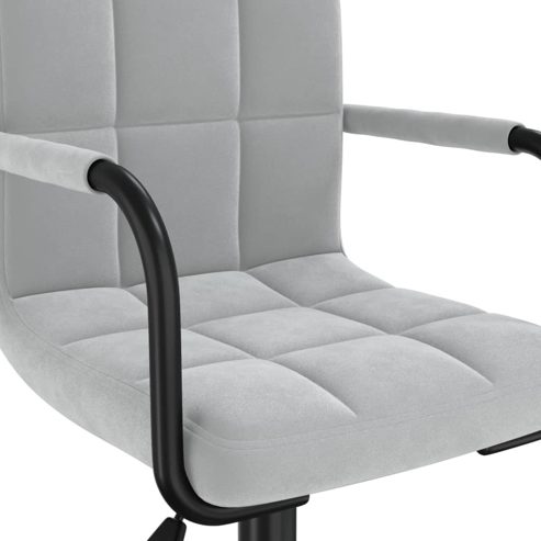 Mit ihrem stilvollen Design sind diese Esstisch-Drehstühle eine praktische und moderne Ergänzung für jeden Wohnraum. Mit weichem Samt bezogen, werden Ihnen diese Drehstühle mit Sicherheit einen optimalen Sitzkomfort bieten. Das pulverbeschichtete Stahlgestell sorgt für eine hohe Stabilität. Dank der Gasdruckfeder ist der Sitz höhenverstellbar. Er kann auch um 360 Grad gedreht werden, um eine große Flexibilität zu bieten. Mit Rollen ausgestattet, lässt sich der Stuhl auch bequem umher verschieben. ** Farbe: Hellgrau ** Stahl-Farbe: Schwarz ** Material: Pulverbeschichteter Stahl, Samt (100% Polyester) ** Füllung: Schaumstoff ** Gesamtmaße: 40 x 47 x (76-87,5) cm (B x T x H) ** Sitzbreite: 40 cm ** Um 360 Grad drehbar ** Mit Gasdruckfeder ** Zusammenbau erforderlich: Ja ** Lieferung enthält: ** 2 x Esszimmerstuhl