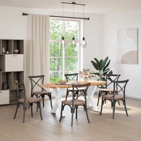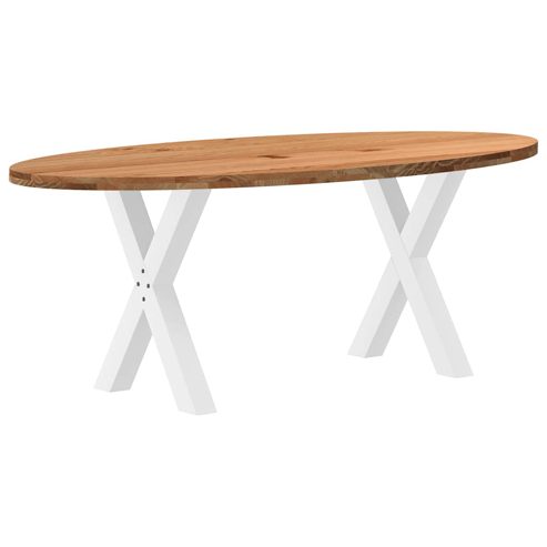 Mach jede Mahlzeit unvergesslich, indem du dich jeden Tag mit deiner Familie oder deinen Freunden um diesen Esstisch aus Holz versammelst! Robustes und langlebiges Material: Massives Eichenholz ist für seine Festigkeit, Haltbarkeit und schöne Maserung bekannt, weshalb es sich hervorragend für haltbare Möbel eignet. Durch seine natürliche Beständigkeit gegen Insektenbefall und Schimmelbildung sehen Eichenmöbel selbst nach jahrelangem Gebrauch brandneu aus.Großer Tisch: Dieser Tisch bietet mit seinen Maßen von 200 x 100 cm viel Platz zum Sitzen und ist das Herzstück deines Essbereichs.Einzigartiger Charme: Da Äste, Risse und Farbabweichungen natürliche Merkmale des Eichenholzes sind, hat jedes Stück dieses Produkts seinen ganz eigenen Charme. Auf den Bildern siehst du Beispiele für die zu erwartenden Variationen.Praktisches Design: Diese Esstischbeine sind mit verstellbaren Nivellierfüßen ausgestattet, die auch auf unebenen Böden für Stabilität sorgen und Bodenkratzer minimieren. Außerdem verfügt die Halterung über vorgebohrte Löcher und mitgelieferte Schrauben, mit denen das Bein an der Tischplatte befestigt werden kann, was die Montage erleichtert.Robustes und stabiles Gestell: Dieser Esszimmertisch hat X-förmige Beine aus pulverbeschichtetem Stahl, die für außergewöhnliche Stabilität und Sicherheit sorgen. Gut zu wissen:Jedes Stück ist ein Unikat, das in Farbe und Maserung variiert. Die Lieferung erfolgt in zufälliger Reihenfolge, wodurch die Exklusivität und Individualität deines Produkts gewährleistet wird.Äste und kleinere Fehler werden mit schwarzem Füllmaterial aufgefüllt, um eine schöne und glatte Tischoberfläche zu erhalten. Beispiele findest du in den Abbildungen.Die Tischplatte ist an den Rändern 4 cm dick, um ein robustes Aussehen zu gewährleisten, und in der Mitte 2 cm dick, um den Holzverbrauch und das Gesamtgewicht zu reduzieren.Bitte bohre die Löcher in der Mitte, nicht an den Rändern der Platte.Bitte achte darauf, die maximale Bohrtiefe von 15 mm nicht zu überschreiten, um die Tischplatte nicht zu beschädigen, da die Plattenstärke 20 mm beträgt.Wir empfehlen, einen Schraubendreher anstelle einer elektrischen Bohrmaschine zu verwenden, um Holzrisse beim Anbringen der Beine zu vermeiden. ** Gesamtmaße: 200 x 100 x 74 cm (L x B x H) ** Zusammenbau erforderlich: Ja ** Tischplatte: ** Farbe: Hellbraun ** Material: Massives Eichenholz, fein geschliffen und hell lackiert ** Max. Einschraubtiefe: 15 mm ** Keine vorgebohrten Löcher ** Form: Oval ** Gewicht: ca. 32 kg, mit +/-8% Toleranz ** Tischbeine: ** Farbe: Weiß ** Material: Pulverbeschichteter Stahl ** Gesamtgröße (pro Stück): 60 x 72 cm (B x H) ** Abmessungen der Halterung: 140 x 140 x 4 mm (L x B x T) ** Abmessungen der Röhre: 80 x 80 x 1,2 mm (L x B x T) ** X-Form ** Verstellbare Kunststoffnivellierer ** Lieferung umfasst: ** 1 x Tischplatte ** 2 x Tischbein ** 1 x Satz Befestigungsschrauben (M5 x 18 mm) für die Befestigung der Beine an der Tischplatte