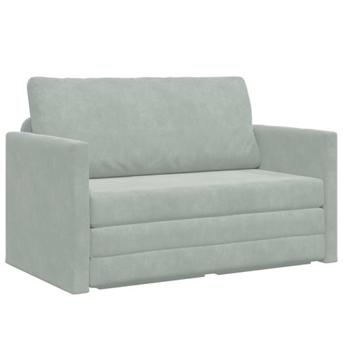 Dieses Klappsofa Bett 2-Sitzer kombiniert mühelos Stil und Praktikabilität und passt dank des modernen und schlichten Designs perfekt in Wohnräume und Büros. Mit seiner samtigen Oberfläche ist es eine einladende Ergänzung für jede Umgebung und bietet tollen Komfort. Ideal für alle, die multifunktionale Möbel mögen, verwandelt sich dieses Sofa im Handumdrehen in ein Bett – perfekt für entspannten Tag-Lounging und erholsamen Nachtschlaf. Es wertet jeden Raum mit einem schicken, minimalistischen Look auf und prioritisiert dabei sowohl Komfort als auch Stil. Premium Samtmaterialien Das Sofa-Bett ist aus luxuriösem Samt gefertigt und hat eine samtweiche Oberfläche, die ihn besonders bequem macht. Die glatte Textur sieht nicht nur toll aus, sondern lädt auch zum Sitzen ein und bereichert dein Nutzungserlebnis. Die dicke Samtpolsterung bietet Komfort für stundenlanges Entspannen und ist die perfekte Wahl für alle, die Eleganz mit Gemütlichkeit kombinieren möchten. Flache Armlehnen Die flachen Armlehnen bieten Unterstützung und erhöhen den Sitzkomfort sowie die Gesamtästhetik des Sofas. Wie das Sofa selbst sind sie aus demselben schönen Samt bezogen und sorgen für eine lässige Armlehne, die perfekt zum modernen und schlichten Design passt. Sie ermöglichen eine entspannte Armhaltung für Gespräche oder gemütliches Chillen. Stabiler Rahmen Unser Sofa hat einen robusten Holzrahmen, der für Langlebigkeit sorgt. Dieser Rahmen ist wichtig, um die Belastung beim Wechsel zwischen Sofa und Bett zu tragen und eine langfristige Nutzung zu gewährleisten. Er gibt dir das Vertrauen in die Zuverlässigkeit und Stärke des Sofas und sorgt für sicheren Halt. Für verschiedene Räume geeignet Ideal für Wohnzimmer und Büros, peppt dieses Sofa jeden Raum mit seinem eleganten Design auf. Die klappbare Funktion macht es einfach, zusätzliche Schlafgelegenheiten zu schaffen, was gerade in kleinen oder gemeinsam genutzten Räumen super praktisch ist. Mit minimalem Montageaufwand ist es darauf ausgelegt, unterschiedliche Bedürfnisse zu erfüllen. Pflege und Wartung Damit das Samt immer tiptop aussieht, reinige ihn vorsichtig mit einem trockenen Tuch und vermeide aggressive Chemikalien. So bleibt die Schönheit und Funktionalität einfach erhalten. Das Sofa hält den täglichen Anforderungen stand und behält seine Textur – es ist die perfekte Wahl für schicke Innenräume. ** Farbe: Hellgrau ** Material: Samt ** Füllmaterial: Memory-Schaum ** Rahmenmaterial: Holzwerkstoff ** Armlehnenmaterial: Samt ** Gesamtabmessungen: 124 x 71 x 78 cm (L x B x H) ** Sitzbreite: 110 cm ** Sitztiefe: 44 cm ** Klappbar/umwandelbar ** Stabiler und robuster Rahmen ** Sitzplatzkapazität: 2 ** Montage erforderlich: Ja ** Lieferumfang: ** 1 x Klappsofa