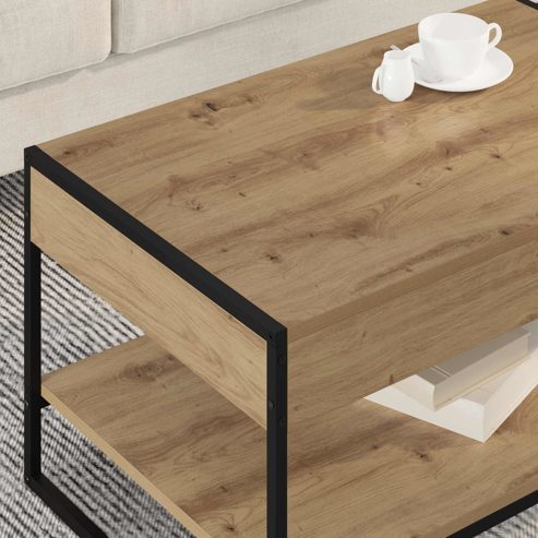 Dieser industrielle Couchtisch kombiniert coole Materialien mit schlichtem Design und ist das perfekte Highlight für moderne Wohnzimmer. Der rechteckige Tisch hat eine praktische Oberfläche, die den industriellen Stil verkörpert und super für urbane Räume geeignet ist. Sein flexibles Design passt überall hin und ist gleichzeitig funktional und stylisch. Holzwerkstoff Verarbeitung: Der Couchtisch ist aus hochwertigem Holzwerkstoff gefertigt, der für seine Robustheit und sein sauberes Finish bekannt ist. Das Material sorgt für Stabilität und sieht dabei gut aus, sodass er den täglichen Gebrauch gut aushält. Stahlbeine: Mit stabilen Stahlbeinen bietet der Tisch top Stabilität für den täglichen Gebrauch. Die schlanken Beine bringen einen modernen Look und sorgen dafür, dass er auf verschiedenen Böden nicht wackelt. Einfache Montage: Die Montage ist super einfach und braucht nur zwei Personen und einen Schraubendreher. Die Anleitung ist klar, sodass du den Tisch schnell in deinem Wohnraum aufstellen kannst. Einfache Pflege: Die Pflege ist ein Kinderspiel. Ein einfaches Abwischen mit einem trockenen Tuch reicht aus, um den Tisch in top Zustand zu halten. So bleibt er schick und sauber ohne aggressive Chemikalien. Urbaner Stil: Der industrielle Look kombiniert Elemente, die an Loft-Wohnungen erinnern, und bietet ein schickes, aber cooles Finish, das perfekt für moderne Einrichtungen ist. Ideal für alle, die ihrem Zuhause einen zeitgemäßen Touch geben wollen. ** Farbe: Kunsthandwerk Eiche ** Material: Holzwerkstoff ** Gesamtabmessungen: 80 x 50 x 40 cm (L x B x H) ** Anzahl Staufächer: 1 ** Montage erforderlich: Ja