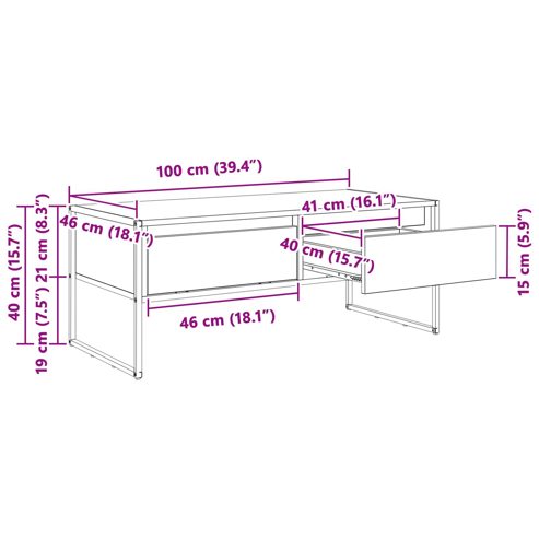 vidaXL Couchtisch mit Schubladen Sonoma 100 x 46 x 40 cm Holzwerkstoff