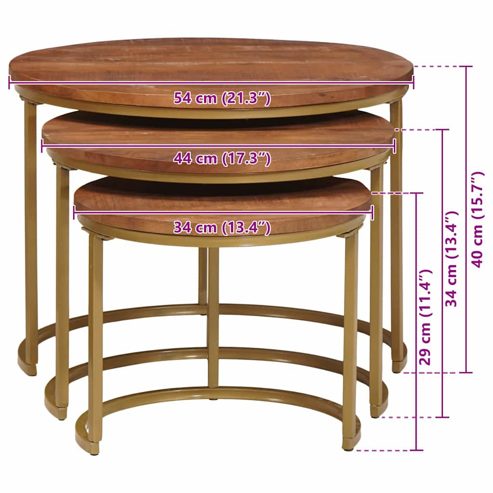 vidaXL Nesting-Couchtische 3 pcs Honigbraun Massivholz Mango und Stahl