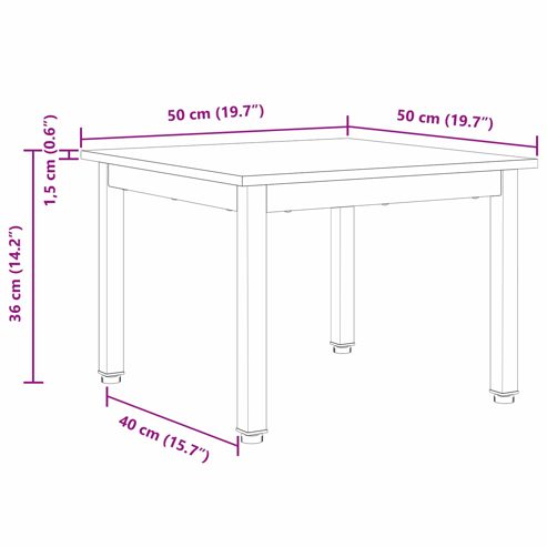 Der moderne Couchtisch ist der perfekte Mittelpunkt in deinem Wohnbereich. Mit klaren Linien und minimalistischen Design verleiht er deinem Raum Eleganz und setzt stilvolle Akzente. Hergestellt aus massivem Kiefernholz und robusten Metallbeinen bringt er Wärme und industriellen Charme in dein Zuhause. Seine strapazierfähige Bauweise sorgt dafür, dass er lange hält, während der schlanke Look jede Dekoration perfekt ergänzt. Modernes Design: Schlanke Silhouette mit minimalen Verzierungen macht diesen Tisch ideal für moderne Innenräume und unterschiedliche Dekorationsstile. Er sieht nicht nur gut aus, sondern ist auch funktional und praktisch. Massivholzplatte: Die Tischplatte aus massivem Kiefernholz mit natürlicher Maserung gibt deinem Wohnraum einen Hauch von Eleganz. Robuste Kiefer garantiert Langlebigkeit und eine tolle Nutzungserfahrung. Robuste Metallbeine: Quadratische Metallbeine sorgen für Stabilität. Das schicke Metall-Finish ergänzt perfekt das natürliche Holz und gibt dem Tisch einen zeitgemäßen Look. Anpassungsfähig an Räume: Ideal für verschiedene Wohnbereiche, passt sich dieser Tisch problemlos an. Egal ob als Mittelpunkt in einem großen Wohnzimmer oder als Akzentstück in kleinen Wohnungen, seine Größe ist perfekt abgestimmt. Einfach zu pflegen: Um den Tisch in Topform zu halten, einfach mit einem trockenen Tuch abwischen. So bleibt der natürliche Glanz des Holzes über Jahre erhalten. ** Farbe: Weiß ** Material: Massives Kiefernholz ** Gesamtabmessungen: 50 x 50 x 36 cm (L x B x H) ** Max. Gewicht: 80 kg ** Elegantes Design ** Nur für den Innenbereich ** Montage erforderlich: Ja ** Lieferumfang: ** 1 x Couchtisch