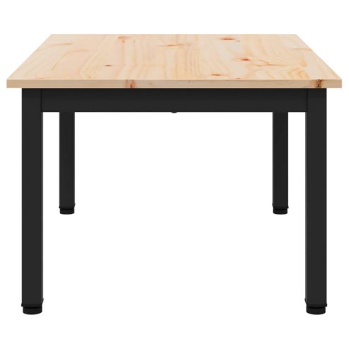 Der moderne Couchtisch ist der perfekte Mittelpunkt in deinem Wohnbereich. Mit klaren Linien und minimalistischen Design verleiht er deinem Raum Eleganz und setzt stilvolle Akzente. Hergestellt aus massivem Kiefernholz und robusten Metallbeinen bringt er Wärme und industriellen Charme in dein Zuhause. Seine strapazierfähige Bauweise sorgt dafür, dass er lange hält, während der schlanke Look jede Dekoration perfekt ergänzt. Modernes Design: Schlanke Silhouette mit minimalen Verzierungen macht diesen Tisch ideal für moderne Innenräume und unterschiedliche Dekorationsstile. Er sieht nicht nur gut aus, sondern ist auch funktional und praktisch. Massivholzplatte: Die Tischplatte aus massivem Kiefernholz mit natürlicher Maserung gibt deinem Wohnraum einen Hauch von Eleganz. Robuste Kiefer garantiert Langlebigkeit und eine tolle Nutzungserfahrung. Robuste Metallbeine: Quadratische Metallbeine sorgen für Stabilität. Das schicke Metall-Finish ergänzt perfekt das natürliche Holz und gibt dem Tisch einen zeitgemäßen Look. Anpassungsfähig an Räume: Ideal für verschiedene Wohnbereiche, passt sich dieser Tisch problemlos an. Egal ob als Mittelpunkt in einem großen Wohnzimmer oder als Akzentstück in kleinen Wohnungen, seine Größe ist perfekt abgestimmt. Einfach zu pflegen: Um den Tisch in Topform zu halten, einfach mit einem trockenen Tuch abwischen. So bleibt der natürliche Glanz des Holzes über Jahre erhalten. ** Farbe: Natur ** Material: Massives Kiefernholz ** Gesamtabmessungen: 70 x 50 x 36 cm (L x B x H) ** Max. Gewicht: 80 kg ** Elegantes Design ** Nur für den Innenbereich ** Montage erforderlich: Ja ** Lieferumfang: ** 1 x Couchtisch