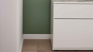 Die Möbel überzeugen mit hochwertigen Melaminharz-Oberflächen, die kratzfest, UV-beständig, strapazierfähig und pflegeleicht sind – ideal, wenn du Wert auf langlebige Qualität legst. Ob Risseiche Nachbildung, Balkenbuche Nachbildung, Tonweiß matt, Grau matt oder Schilfgrün – du hast die Wahl zwischen modernen, natürlich wirkenden Farbtönen. Dank der vormontierten Korpusse gelingt der Aufbau mühelos, und mit den vierfach höhenverstellbaren Einlegeböden passt du den Stauraum ganz nach deinen Bedürfnissen an. Das griffloses Design mit Push-to-open-Funktion sorgt für ein ruhiges Gesamtbild, während die Griffe an den Glastüren stilvolle Akzente setzen.