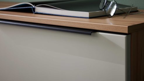 | Farbhinweis: | Sandbeige Balkenbuche Schwarz (Griffe und Füße) | |