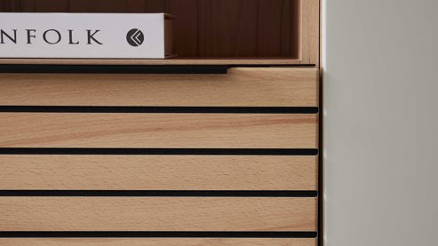 Interliving Wohnzimmer Serie 2032 – dein neues Lowboard in Sandbeige und Balkenbuche