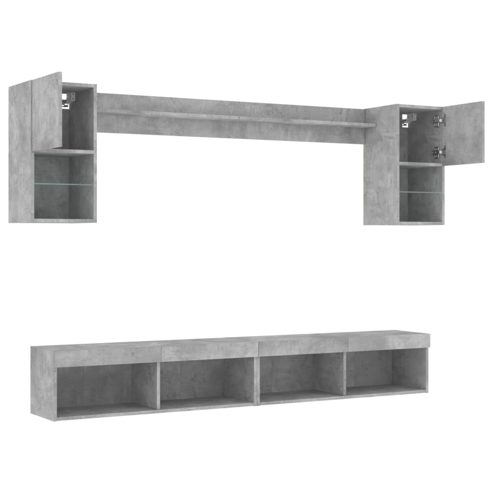 vidaXL 6-tlg. Wohnwand mit LED-Beleuchtung Betongrau Holzwerkstoff