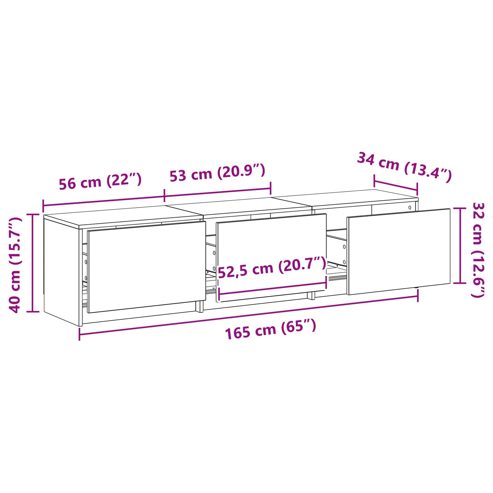 Dieser moderne TV-Schrank ist eine schicke Ergänzung für jedes Wohnzimmer. Mit einem coolen Mix aus aktuellem Stil und praktischen Aspekten ist er die perfekte Lösung für all deine TV- und Medienstauräume. Das einfache, geradlinige Design mit rustikaler Note verleiht ihm seinen besonderen Charme. Konstruktion aus Holzwerkstoff Hergestellt aus robustem Holzwerkstoff, bietet dieser TV-Schrank Langlebigkeit und Stabilität. Der solide Rahmen sorgt für Sicherheit und die modernen Akzente verleihen deinem Raum Eleganz. Pflegeleicht und für den täglichen Gebrauch geeignet, ist er die zuverlässige Wahl für dein Zuhause. Praktische Aufbewahrung Mit Regalen und Fächern hat dieser Schrank jede Menge Platz für deine Medientechnik, Bücher und Dekoartikel. Das schlichte Regal-Design ermöglicht vielseitige Aufbewahrung und hält dein Wohnzimmer ordentlich. Rustikales Design Das rustikale Design mit klaren Linien und wenig Schnickschnack bringt Frische und Charme in dein Wohnzimmer. Die schöne Materialkombination fügt Wärme hinzu und passt in zahlreiche Einrichtungsstile. Flexible LED-Beleuchtung Mit flexiblen LED-Streifen beleuchtet, sorgt dieser Schrank für stimmungsvolle Lichtakzente, die du einfach per Fernbedienung steuern kannst. Die bunten Lichter schaffen eine anpassbare Atmosphäre, ideal für jede Stimmung im Wohnzimmer. Einfache Pflege Der Schrank braucht nur ein bisschen Aufmerksamkeit: ein trockenes Tuch zum Putzen reicht völlig. Vermeide aggressive Chemikalien, damit er lange wie neu aussieht. Die pflegeleichten Hinweise machen den Umgang damit super einfach. ** Farbe: Schwarz Eichen-Optik ** Material: Holzwerkstoff ** Gesamtabmessungen: 165 x 34 x 40 cm (L x B x H) ** mit 3 Schubladen ** mit Brett-Regale ** Mit LED ** Geräumige Aufbewahrung ** Rustikales design ** Montage erforderlich: Ja