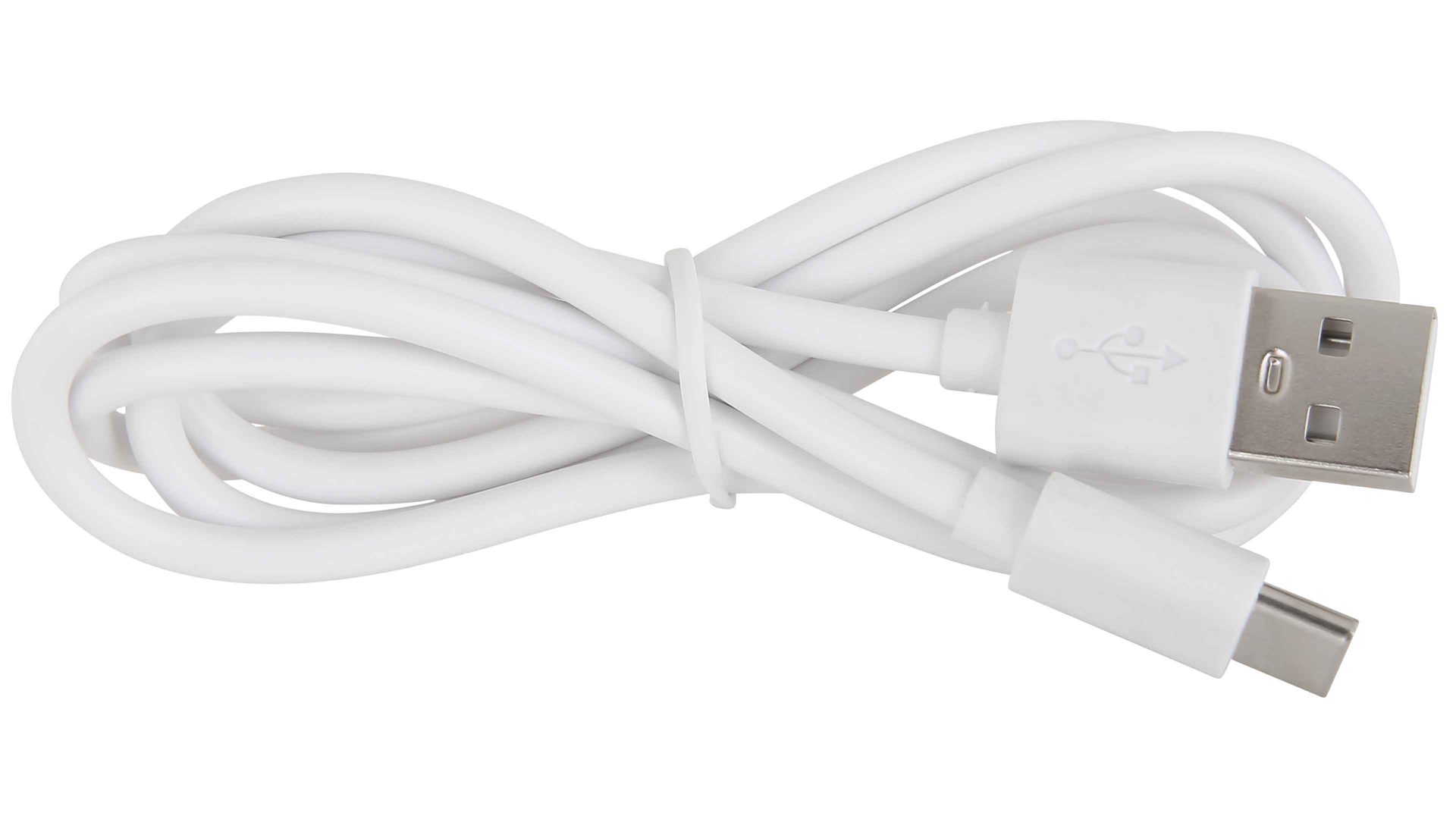 weißes USB-Ladekabel inklusive Akku CR18650 (3,7 Volt / 1800 mAh)