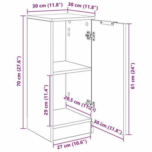 vidaXL Sideboard Schwarz Eichen-Optik 30 x 30 x 70 cm Holzwerkstoff
