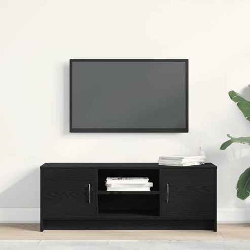 Mit seinem stilvollen und zugleich praktischen Design wird dieser TV-Schrank zum Blickfang Ihres Zimmers. Stabiles und langlebiges Material: Holzwerkstoff ist ein langlebiges und stabiles Material mit einer glatten Oberfläche, die feuchtigkeitsbeständig, verzugs- und spaltbeständig ist und sich somit für eine Vielzahl von Projekten eignet.Viel Stauraum: Dieser TV-Ständer bietet reichlich Stauraum, um Ihre Zeitschriften, Bücher, DVDs und Multimediageräte übersichtlich und griffbereit aufzubewahren.Stabile und robuste Tischplatte: Die robuste Tischplatte eignet sich ideal zum Aufstellen Ihres Fernsehers und Ihrer Stereoanlage oder von Dekorationsgegenständen wie Vasen oder Topfpflanzen.Praktische Türen: Die beiden Türen sorgen für einen sauberen und organisierten Raum, indem sie kleine Utensilien und Unordnung dahinter verbergen.Metallgriffe: Dieser Medienschrank ist mit Metallgriffen ausgestattet, die einen einfachen Zugriff ermöglichen und seinem Design einen stilvollen Industriestil verleihen. ** Farbe: Schwarze Eiche ** Material: Holzwerkstoff ** Maße: 102 x 30 x 37,5 cm (B x T x H) ** Montage erforderlich: Ja