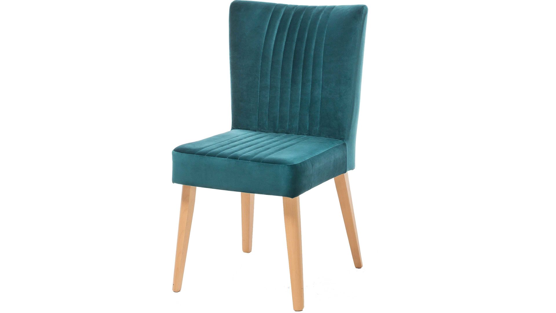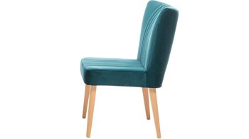 Ein farblicher Hingucker ist der hochwertige Polsterstuhl mit petrolfarbenem Bezug im modernen Samtlook. Aufwendige Steppnähte, die auf Sitz und Rücken angebracht sind, geben dem Sitzmöbel zusätzlich eine interessante Optik. Am besten passt der Polsterstuhl mit den Maßen von ca. 46 x 92 x 66 cm (BxHxT) an einen Esstisch aus Eiche, da auch das Holzgestell aus Eiche natur ist.