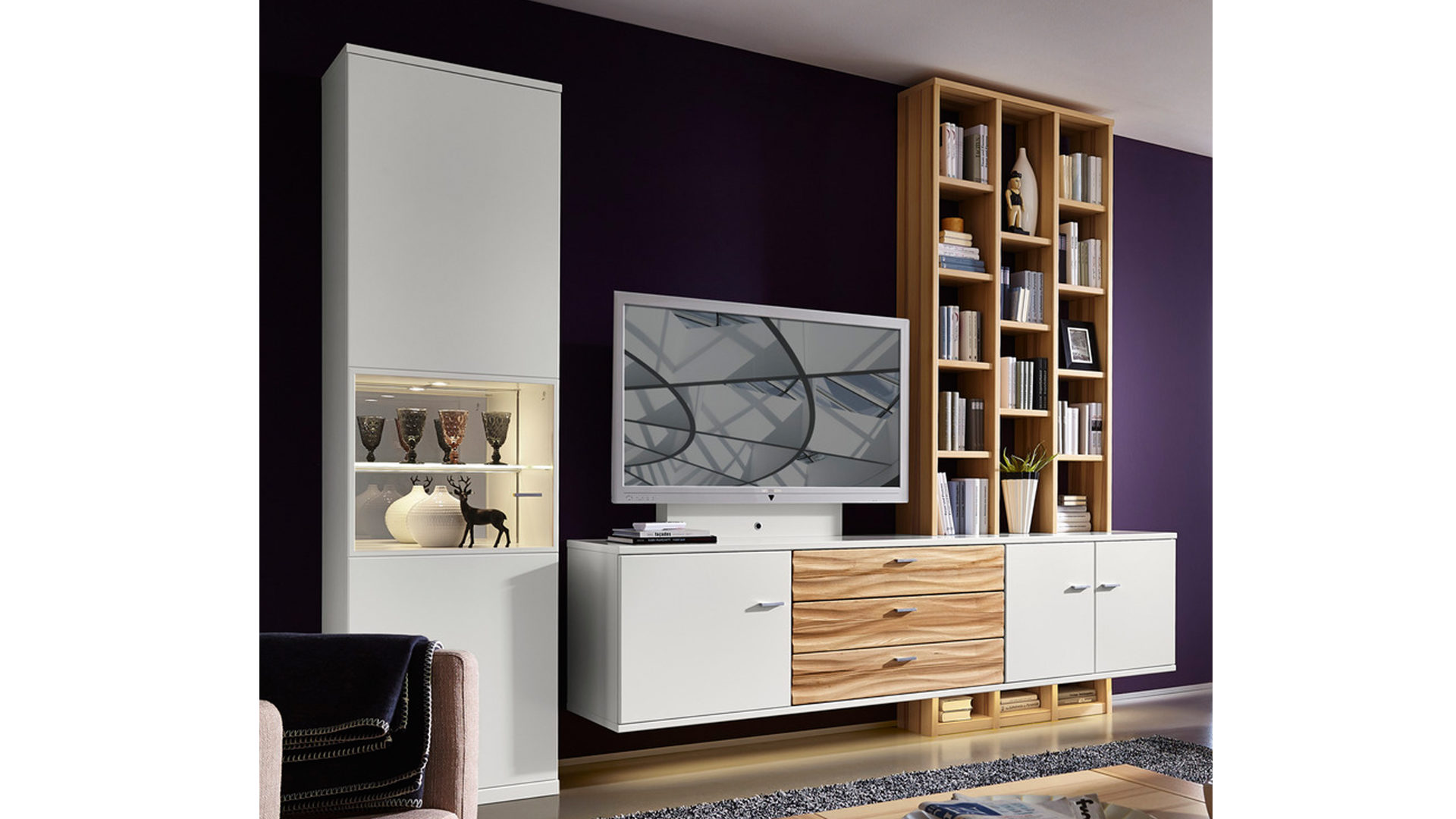 Gegen Mehrpreis erhalten Sie einige Wohnmöbel der Kombination mit energieeffizienter Beleuchtung. Durch den Typenplan mit einer großen Farb- und Typenauswahl können Sie das genaue Design der Wohnwand individuell an Ihren Geschmack anpassen. Auch weitere Artikel der Serie stehen Ihnen zur Verfügung - für ein rundum harmonisch eingerichtetes Wohnzimmer. Diese Elemente finden sie über die Produktnummer 483582-010.