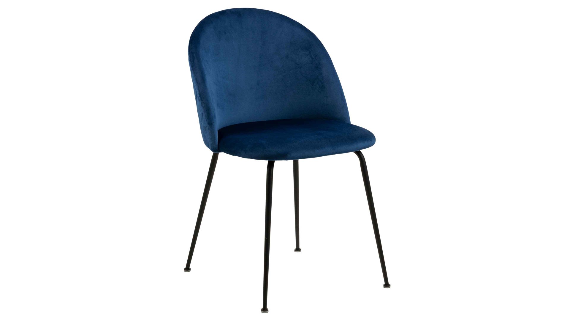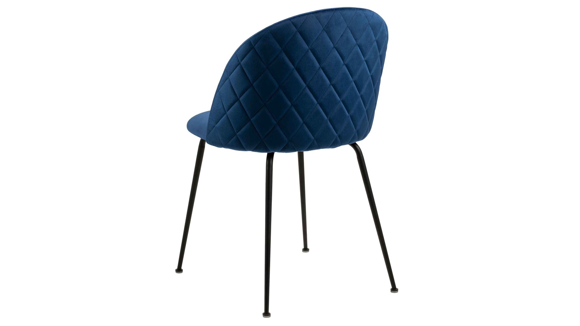 Dabei harmoniert der Polsterstuhl in seiner sanften Formensprache mit zahlreichen Einrichtungsstilen. Moderne Geradlinigkeit ergänzt er ebenso stimmig wie den beliebten Vintage-Trend. Auch farblich erlaubt der Esszimmerstuhl Louise angenehme Freiheit beim Kombinieren: Dafür sorgt der dunkelblaue Bezug Dublin 49 in Samtoptik, der sowohl die Sitzfläche als auch die Rückenlehne umhüllt. Auf der Rückseite setzt eine Harlekinsteppung einen charmanten Blickfang. Die rau pulverbeschichteten Metallfüße ergänzen das Gesamtbild in dezentem Schwarz.