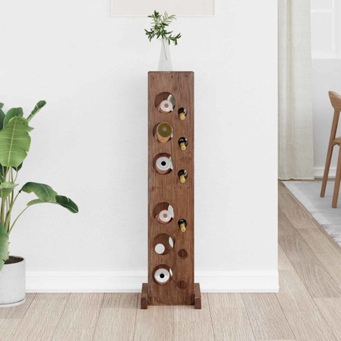 Dieses Weinregal besticht durch seine tolle Verarbeitung und schicke Optik - eine super Ergänzung für jedes Esszimmer oder jede Küche. Aus massivem Mahagoniholz gefertigt, hat es eine schöne braune Oberfläche, die zu vielen Einrichtungsstilen passt. Ideal für Weinkenner oder einfach für jemanden, der gerne ein Glas Wein genießt und seine Sammlung schick organisieren will. Die schlanke Form fügt sich in jedes Zuhause ein und bietet gleichzeitig eine praktische Lösung und ein bisschen Luxus. Massivholz Mahagoni Struktur Dieses Weinregal ist aus hochwertigem, massivem Mahagoniholz, das für Langlebigkeit und einen edlen Look sorgt. Mahagoni ist bekannt für seine schöne Verarbeitung und bringt sowohl Eleganz als auch Stabilität, sodass das Regal viele Jahre lang ein Hingucker in deinem Zuhause bleibt. Jedes Stück hat eine eigene Holzmaserung und gibt deiner Weinlagerung einen luxuriösen Touch. Keine Montage Notwendig Das Weinregal kommt fertig montiert zu dir, sodass du es sofort nutzen kannst. Keine komplizierten Aufbauanleitungen – du kannst es einfach überall in deinem Zuhause aufstellen. Das praktische Design sorgt dafür, dass du keine Zeit verlierst und schnell alles parat hast. Nur Innenbereich Dieses Regal ist extra für innen gemacht und passt perfekt in Esszimmer und Küchen. Es hilft nicht nur, die Deko aufzuwerten, sondern sorgt auch dafür, dass deine Weine vor äußeren Einflüssen geschützt sind. Halte deine Flaschen in optimalen Bedingungen in den schönen vier Wänden. Geräumige Weinspeicherung Das Regal hat genug Platz für viele Flaschen und bietet eine sichere und praktische Lagerung. Die großen Fächer sorgen dafür, dass jede Flasche stabil steht und minimieren das Risiko, dass etwas umfällt oder zerbricht. Perfekt für kleine und große Weinsammlungen, es verbindet Funktionalität mit Stil. Elegante Präsentation Es ist nicht nur eine Lagerlösung, sondern zeigt auch deine Lieblingsweine stilvoll. Beeindrucke deine Gäste mit diesem schicken Stück, das auch als Deko-Element fungiert. Zeig deinen Sinn für Wein und Geschmack mit diesem tollen Möbelstück. ** Farbe: Braun ** Material: Massives Mahagoni Holz ** Gesamtabmessungen: 20 x 25 x 100 cm (L x B x H) ** Gewicht: 5,52 kg ** Drinnen & Draußen: Nur für den Innenbereich ** Lieferumfang: ** 1 x Regal