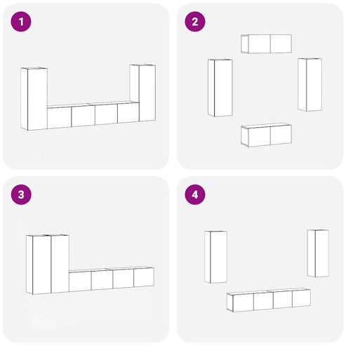 Schau dir das vidaXL 4-teiliges TV-Schrank Set in Schwarzer Eiche an, perfekt für modernes Wohnen. Dieses praktische Set verbindet Stil und Funktion und bietet dir jede Menge Stauraum, während es deinen Raum ordentlich hält. Das wandmontierte Design hilft, deinen Wohnbereich sauber und modisch zu halten. ** Anzahl der Teile: 4 ** Farbe: Schwarz ** Form: Rechteckig ** Material: Ingenieured Holz ** Finish: Matt ** Innen/Außen: Nur für drinnen ** Abdeckung enthalten: Nein ** Raum: Wohnzimmer ** Kapazität: Eignet sich für bis zu 3 Komponenten ** Befestigung enthalten: Wand-/Deckenbefestigungen -z.B. spezielle Schrauben oder Dübel sind nicht enthalten ** Schwenkbar: Nein ** Marke: ** Lieferumfang: 1 Unterhaltungszentrum Rahmen, Regale ** Montage erforderlich: Ja ** Empfohlene Anzahl von Personen zur Montage: 2