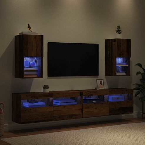 Dieser wandmontierte TV-Schrank bringt modernes Design in dein Wohnzimmer. Mit seiner rechteckigen Form und der glatten Oberfläche passt er perfekt zu zeitgenössischen Einrichtungsstilen. Sein schlankes Aussehen sieht nicht nur gut aus, sondern bietet auch praktische Lösungen für die Aufbewahrung und Präsentation. Optimal für Unterhaltungssysteme, bietet dieser Schrank eine ordentliche Möglichkeit, Mediengeräte, Dekoration und Wohnraum zu organisieren, ohne dabei den Boden zu überfüllen. Wandmontiertes Design: Dieser Schrank schafft Platz auf dem Boden und bietet gleichzeitig viel Stauraum. Seine rechteckige Form und der moderne Stil passen perfekt zu zeitgenössischen Räumen und sind wichtig für alle, die Platz sparen wollen. Dynamische LED-Beleuchtung: Die mehrfarbigen LED-Streifenlichter verändern die Stimmung jedes Raumes. Sie lassen sich einfach über USB anschließen und sorgen für visuelle Highlights, die je nach Anlass angepasst werden können. Holzwerkstoff: Hergestellt aus hochwertigem Holzwerkstoff, garantiert der Schrank Langlebigkeit. Die glatte Oberfläche macht die Reinigung zum Kinderspiel, während die stabile Struktur zuverlässige Unterstützung für deine Unterhaltung bietet. Praktische Stauraumlösungen: Mit Regalbrettern und Türscharniere ausgestattet, bietet der Schrank Platz für Mediengeräte und Deko. Der Stauraum wird schick für eine funktionale Nutzung optimiert, was deinem Wohnbereich eine bessere Ordnung verleiht. Einfache Pflegehinweise: Du kannst alles einfach mit einem trockenen Tuch abwischen, damit die Wartung deine Freizeit nicht stört. Mit der richtigen Pflege bleibt der Schrank frisch, was die Oberfläche und das Finish des Holzes bewahrt. ** Farbe: Altholz ** Material: Holzwerkstoff ** Gesamtabmessungen: 30,5 x 30 x 60 cm (B x T x H) ** mit 2 Türen ** mit 6 Regalen ** Lichttyp: LED-Streifen ** Montage erforderlich: Ja ** Lieferumfang: ** 2xWandmontierterTV-Schrank Dieses Produkt wird mit 5 V Gleichstrom betrieben, aber die zertifizierte 5-V-USB-Stromquelle ist nicht im Lieferumfang enthalten. Eine höhere Spannung kann zu einer Überhitzung führen und das Gerät beschädigen sowie das Risiko von Überhitzung und Brand verursachen. Bitte beachten: Nur zertifizierten Gleichstrom-Eingang mit 5 V verwenden. Eine höhere Spannung kann zu Überhitzung führen und das Gerät beschädigen, was wiederum zu Überhitzung und Brandgefahr führen kann. Schließe dieses Produkt nur an eine Stromversorgung an, die in der Bedienungsanleitung oder auf dem Typenschild beschrieben ist oder von vidaXL ausdrücklich empfohlen wird. Dieses Gerät darf nicht von Kindern unter 14 Jahren oder Personen mit eingeschränkten körperlichen, sensorischen oder geistigen Fähigkeiten oder mangelnder Erfahrung und Kenntnis im Umgang mit elektronischen Geräten verwendet werden. Elektrizität ist gefährlich. Schäden und unsachgemäße Installation, Verwendung oder Veränderung (Austausch einzelner Komponenten) können zu Schäden am Gerät führen, was zu einem Stromschlag und einer Gefahr für den Benutzer führen kann. Dieses Produkt darf nicht in explosionsgefährdeten Bereichen, wie z. B. in der Nähe von brennbaren Flüssigkeiten, Gasen und Staub, oder bei Temperaturen über 50 Grad Celsius oder mehr betrieben werden. Das Produkt nicht einschalten, wenn das Anschlusskabel oder das Netzteil sichtbar beschädigt sind. Wenn das externe flexible Kabel oder die Schnur dieser Leuchte beschädigt ist, darf es ausschließlich vom Hersteller oder seinem Kundendienst oder einer ähnlich qualifizierten Person ausgetauscht werden, um Gefahren zu vermeiden. Schalte die Stromversorgung während der Installation und Wartung aus. Stelle sicher, dass die Glühbirnen abgekühlt sind. Die Lichtquelle dieser Leuchte ist nicht austauschbar; wenn die Lichtquelle das Ende ihrer Lebensdauer erreicht hat, muss die gesamte Leuchte ausgetauscht werden. Nur für den Innenbereich geeignet, nicht im Freien verwenden.