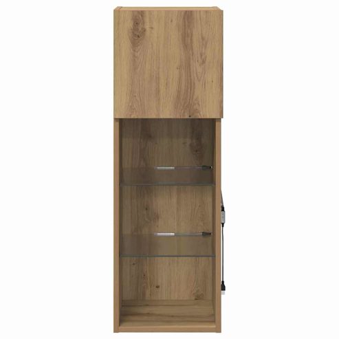 Dieser wandmontierte TV-Schrank bringt modernes Design in dein Wohnzimmer. Mit seiner rechteckigen Form und der glatten Oberfläche passt er perfekt zu zeitgenössischen Einrichtungsstilen. Sein schlankes Aussehen sieht nicht nur gut aus, sondern bietet auch praktische Lösungen für die Aufbewahrung und Präsentation. Optimal für Unterhaltungssysteme, bietet dieser Schrank eine ordentliche Möglichkeit, Mediengeräte, Dekoration und Wohnraum zu organisieren, ohne dabei den Boden zu überfüllen. Wandmontiertes Design: Dieser Schrank schafft Platz auf dem Boden und bietet gleichzeitig viel Stauraum. Seine rechteckige Form und der moderne Stil passen perfekt zu zeitgenössischen Räumen und sind wichtig für alle, die Platz sparen wollen. Dynamische LED-Beleuchtung: Die mehrfarbigen LED-Streifenlichter verändern die Stimmung jedes Raumes. Sie lassen sich einfach über USB anschließen und sorgen für visuelle Highlights, die je nach Anlass angepasst werden können. Holzwerkstoff: Hergestellt aus hochwertigem Holzwerkstoff, garantiert der Schrank Langlebigkeit. Die glatte Oberfläche macht die Reinigung zum Kinderspiel, während die stabile Struktur zuverlässige Unterstützung für deine Unterhaltung bietet. Praktische Stauraumlösungen: Mit Regalbrettern und Türscharniere ausgestattet, bietet der Schrank Platz für Mediengeräte und Deko. Der Stauraum wird schick für eine funktionale Nutzung optimiert, was deinem Wohnbereich eine bessere Ordnung verleiht. Einfache Pflegehinweise: Du kannst alles einfach mit einem trockenen Tuch abwischen, damit die Wartung deine Freizeit nicht stört. Mit der richtigen Pflege bleibt der Schrank frisch, was die Oberfläche und das Finish des Holzes bewahrt. ** Farbe: Artisan-Eiche ** Material: Holzwerkstoff ** Gesamtabmessungen: 30,5 x 30 x 90 cm (B x T x H) ** mit 2 Türen ** mit 6 Regalen ** Lichttyp: LED-Streifen ** Montage erforderlich: Ja ** Lieferumfang: ** 2xWandmontierterTV-Schrank Dieses Produkt wird mit 5 V Gleichstrom betrieben, aber die zertifizierte 5-V-USB-Stromquelle ist nicht im Lieferumfang enthalten. Eine höhere Spannung kann zu einer Überhitzung führen und das Gerät beschädigen sowie das Risiko von Überhitzung und Brand verursachen. Bitte beachten: Nur zertifizierten Gleichstrom-Eingang mit 5 V verwenden. Eine höhere Spannung kann zu Überhitzung führen und das Gerät beschädigen, was wiederum zu Überhitzung und Brandgefahr führen kann. Schließe dieses Produkt nur an eine Stromversorgung an, die in der Bedienungsanleitung oder auf dem Typenschild beschrieben ist oder von vidaXL ausdrücklich empfohlen wird. Dieses Gerät darf nicht von Kindern unter 14 Jahren oder Personen mit eingeschränkten körperlichen, sensorischen oder geistigen Fähigkeiten oder mangelnder Erfahrung und Kenntnis im Umgang mit elektronischen Geräten verwendet werden. Elektrizität ist gefährlich. Schäden und unsachgemäße Installation, Verwendung oder Veränderung (Austausch einzelner Komponenten) können zu Schäden am Gerät führen, was zu einem Stromschlag und einer Gefahr für den Benutzer führen kann. Dieses Produkt darf nicht in explosionsgefährdeten Bereichen, wie z. B. in der Nähe von brennbaren Flüssigkeiten, Gasen und Staub, oder bei Temperaturen über 50 Grad Celsius oder mehr betrieben werden. Das Produkt nicht einschalten, wenn das Anschlusskabel oder das Netzteil sichtbar beschädigt sind. Wenn das externe flexible Kabel oder die Schnur dieser Leuchte beschädigt ist, darf es ausschließlich vom Hersteller oder seinem Kundendienst oder einer ähnlich qualifizierten Person ausgetauscht werden, um Gefahren zu vermeiden. Schalte die Stromversorgung während der Installation und Wartung aus. Stelle sicher, dass die Glühbirnen abgekühlt sind. Die Lichtquelle dieser Leuchte ist nicht austauschbar; wenn die Lichtquelle das Ende ihrer Lebensdauer erreicht hat, muss die gesamte Leuchte ausgetauscht werden. Nur für den Innenbereich geeignet, nicht im Freien verwenden.