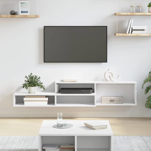 Dieser moderne Wand-TV-Ständer ist der Inbegriff von stilvoller Praktikabilität und kombiniert Funktionalität mit schickem Minimalismus. Ideal für alle, die zeitgenössisches Design mögen, verleihen die klaren Linien und die nicht-reflektierende matte Oberfläche einen Hauch von Eleganz und machen ihn zu einem echten Blickfang in jedem Raum. Er ist perfekt für Stadtwohnungen, und der Holzwerkstoff sorgt für eine stabile Basis, ideal für die Unterbringung von Unterhaltungstechnik und verbessert die Funktionalität sowie Ästhetik deines Wohnzimmers. Material aus Holzwerkstoff Dieser wandmontierte TV-Ständer bietet Stabilität und Langlebigkeit mit Holzwerkstoff, der eine robuste Grundlage für den täglichen Gebrauch bietet. Es sorgt nicht nur für Stabilität, sondern bringt auch einen modernen Touch in deinen Wohnraum und passt zu vielen Einrichtungsstilen. Stauraum-Funktionalität Mit mehreren Regalen bietet dieser TV-Ständer genug Platz, um Mediengeräte, Bücher oder Dekoration ordentlich zu verstauen und zu präsentieren. Die cleveren Stauraummöglichkeiten halten dein Entertainment-Bereich organisiert und sauber, was die Funktionalität deines Raums verbessert. Platzsparendes Design Da er an der Wand montiert ist, maximiert der TV-Ständer den Fußboden und hebt dein Entertainment-Setup an. Sein minimalistisches Design macht ihn zu einer optisch ansprechenden Wahl für dein Zuhause, besonders in Räumen mit wenig Platz. Modernes Minimalismus Geprägt von klaren Linien und mattem Finish, zeigt der TV-Ständer moderne Einfachheit. Seine schlichte Eleganz fügt sich nahtlos in viele Dekore ein und ist eine ideale Wahl für Leute, die sowohl Stil als auch Funktionalität schätzen. Einfache Pflegehinweise Um ihn in gutem Zustand zu halten, erfordert der Ständer minimalen Pflegeaufwand und kann einfach mit einem feuchten Tuch abgewischt werden. Auch sorgt das sichere Befestigen an der Wand dafür, dass er stabil bleibt und nicht umkippt, was Sicherheit in deinem Wohnbereich garantiert. ** Material: Holzwerkstoff ** Gesamtabmessungen: 150 x 25 x 28,5 cm (L x B x H) ** mit 1 Regal ** Montage erforderlich: Ja ** Lieferumfang: ** 1 x Wand Fernseherständer