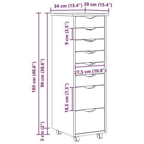 vidaXL Rollcontainer mit Schubladen MOSS Klarlack 34 x 39 x 103 cm