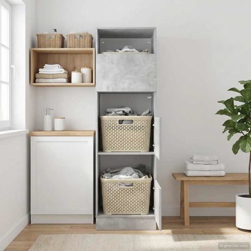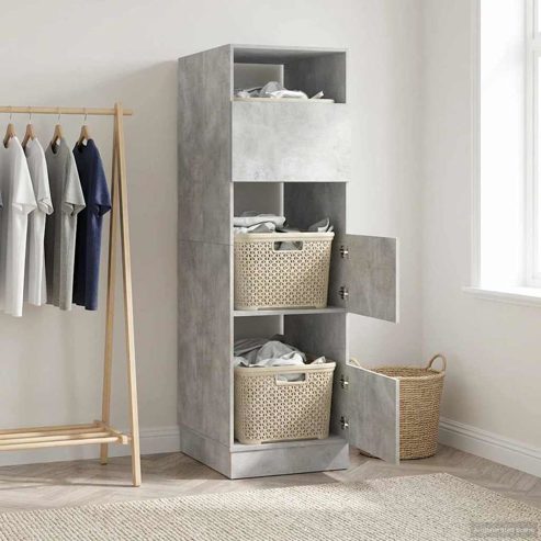 vidaXL Wäscheschrank mit Speicher Beton 50 x 68 x 162 cm Holzwerkstoff
