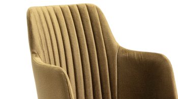 Der Armlehnstuhl Eldar präsentiert sich modern und extravagant designt. Zudem ist er hochwertig verarbeitet und ungemein bequem. Mit der gelungenen Kombination aus dem edlen olivgrünen Stoffbezug und dem schwarz lackierten Buchenholzgestell strahlt der Stuhl noble Eleganz und einladende Gemütlichkeit aus. Für das gewisse optische Etwas sorgt die aufwendig gesteppte Rückenlehne.