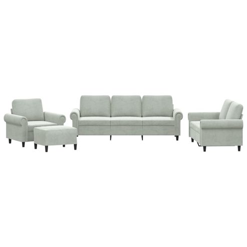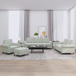 vidaXL 4-tlg. Sofagarnitur mit Kissen Hellgrau Samt
